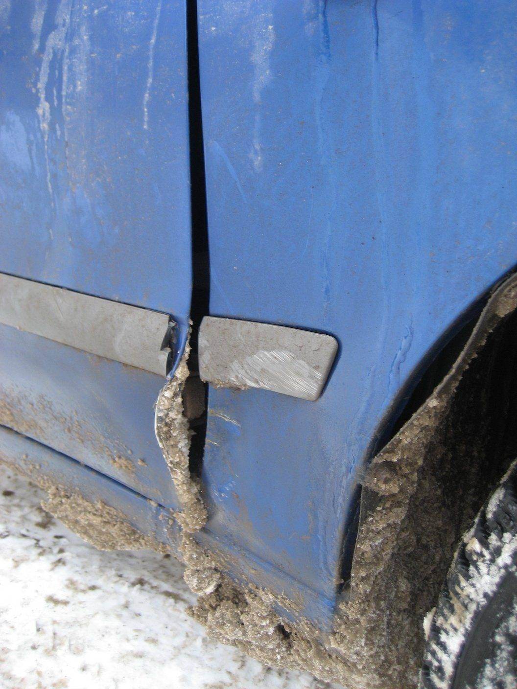 Починился, цена попадания в люк - 4 т.р: 2 за жесть и две за покраску. Осталось приклеить молдинг на крыло, а на двери пока так и оставлю поломанный...