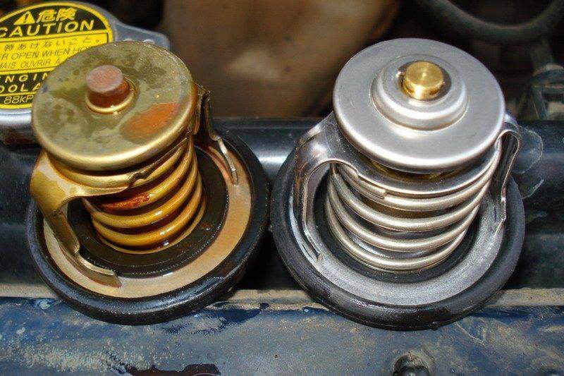 покупал по экзисту тойотовский(он там один).откручиваешь 2 гайки крепления силуминового патрубка(у меня он под трамблером),но прежде чем откручивать приготовь тару,потому что когда вытащищь термостат весь антифриз с печки начнет вытекать!на термостате резинка-не порви ее и запомни расположение штырька на термостате,новый также поставить нужно!вот и все!