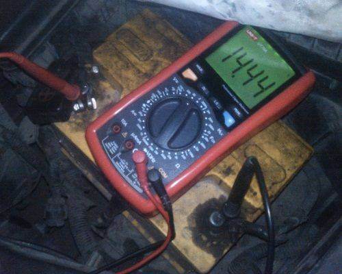 Вот показания вольтметра нового контрактного генератора. Измерения проводились на прогретом двигателе 800-900 об/мин.