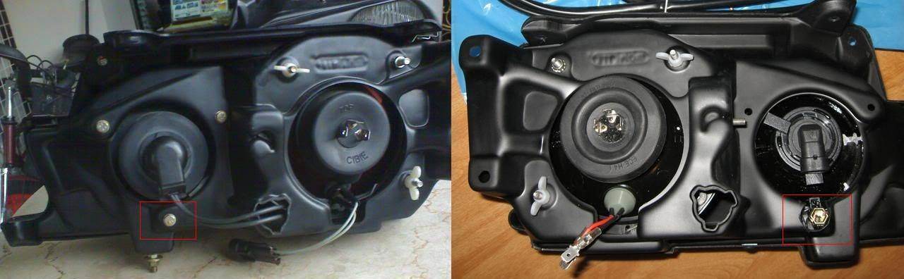 Greek_89 писал(а): Если Вас не затруднит дайте фото информацию. Вот для наглядности фото сзади (слева старая версия, справа новая). Faranos имеет ввиду то, что если посмотреть на расположение маленького модуля (дальнего/туманки), то можно заметить, что снизу, где располагается золотистый болт регулировки (если смотреть на новую версию корпусов), сделано технологическое отверстие-вырез в пластике фары, которого на старой версии нет