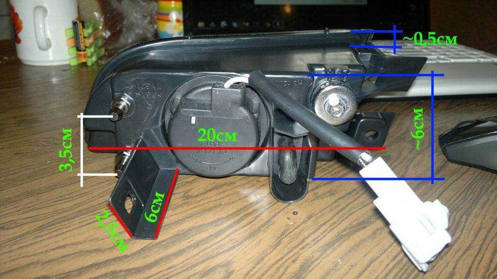 Добавлено спустя 2 минуты 1 секунду:Постарался заодно снять размеры по максимуму. Цифры не совсем точные, пару миллиметров плюс-минус из-за формы ПТФ и скругленных углов))