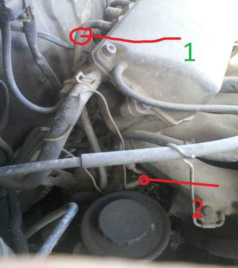 Дэн здарова под цифрами 1 и 2-обратные адреса этих двух трубок. по цифрой 2-шланг втыкается в трубку,которая идет под впуском кстати оба эти шланга разных длин,поэтому ты никак их не перепутаешь!