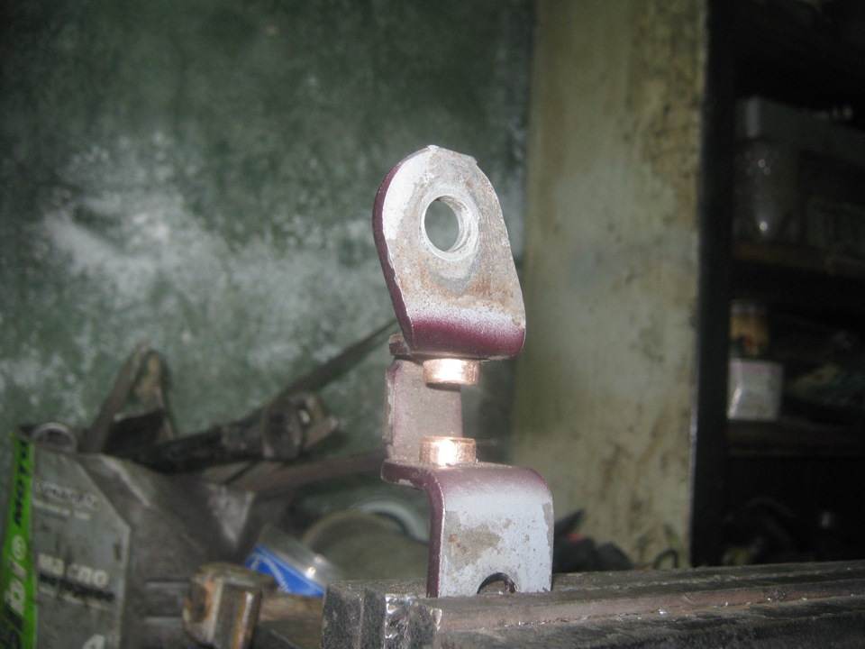 Если ось не будет заходить в запрессованные втулки, можно пройтись тем же сверлом на 10 мм.Беремся за наружнюю часть, верхнее отверстие рассверливаем на 10 мм, нижнее стачиваем надфилем под квадрат. Вложение: