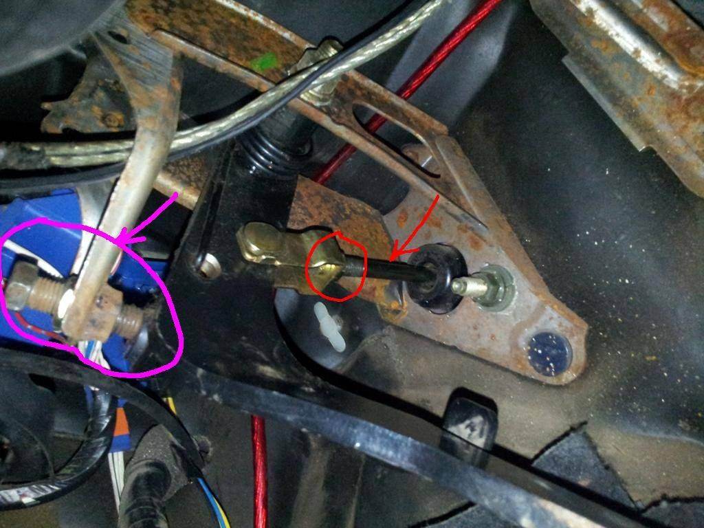 Mr_Nuke, красным отмечены гайка и шток ГЦС, покрутив который можно отрегулировать момент срабатывания сцепления. фиолетовый - регулировка высоты педали