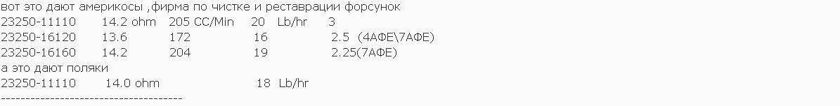 Solaris59 писал(а): Почитал, подходят от Волги, --Эт вряд ли (сухов) Solaris59 писал(а): Приносят штук 5 разных, и говорят они все от 4a-fe, но всё не то! --На 4Афе подходят десятка 2 разных форсунок