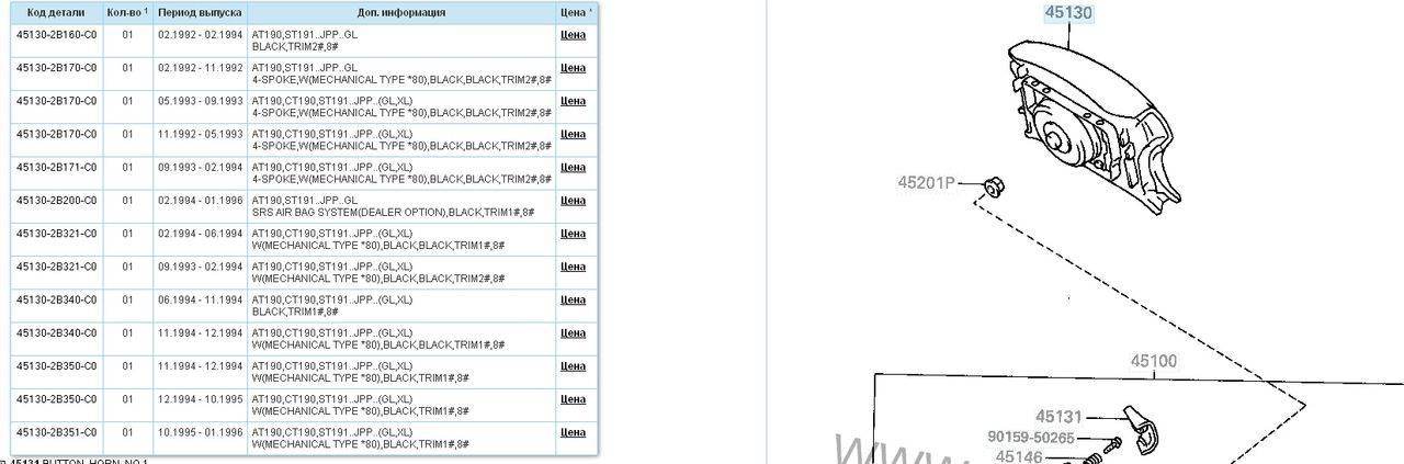 Grooper писал(а): 1)Возможно перегорел какой предохранитель или что ещё может? Предохранитель, вряд ли, если только по нелепому стечению обстоятельств, на всякий случай проверь "HORN", кажется так его зовут, а вообще проверь плавающий контакт под рулем, может "завис" или клемма с него слетела, руль придется снять, как снимешь, попробуй плавающий контакт замкнуть на вал рулевой колонки, если ничего, снимай подрулевые переключатели, там все видно, и понятно. Grooper писал(а): хочу вкорячить руль какой покрасивее(только от Toyota)-так вот какой можно поставить(скорее всего нужен с подушкой) ,как установить и что для этого нужно-так как у меня подушка заводом не предусмотрена? С подушкой не получится, нужно как минимум менять подрулевые переключатели, иначе шлейф (спиральный) не влезет, а возможно и рулевую колонку, смотреть надо подойдут переключатели, или нет, я тоже хотел поставить руль с шлейфом, делал управление магнитолой на руле, пришлось ограничится только рулем, со старого руля вырезал часть кожуха с контактным кольцом, и впаял в кожух нового руля, вопрос с управлением решил по другому.
