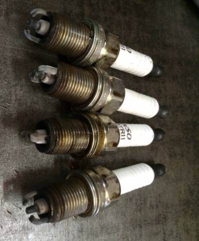 Сегодня компрессию померил - 14 очков во всех горшках на пятый качок свечи вот такие, только третья была в масле(резьба) остальные сухие
