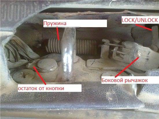 Fritz писал(а): всё на месте вроде Кнопки отключения лампочки нету. Боковой рычажок как-то сильно отогнут в сторону. Править железяку однозначно. Может он просто не нажимает на кнопку на замке. Там еще есть рычажок LOCK/ UNLOCK, в первую очередь надо проверить в каком он положении. Можно далеко не ходить, просто подергать за тросик и понаблюдать за боковым рычажком. Если реакции нет, перевести в другое положение. Честно говоря, я бы поменял этот механизм. Кнопки нету, а это значит, что крышку багажника при открытии выталкивать ничего не будет. Может и будет багажник открываться, пробовать надо. У меня не открывался. Скорее всего и в данном случае открываться не будет. Но у меня не была подсоединена мощная пружина, которая под серьгой расположена. На фото она в 1 концом в воздухе, а сам механизм кнопки отломан и отсутствует.