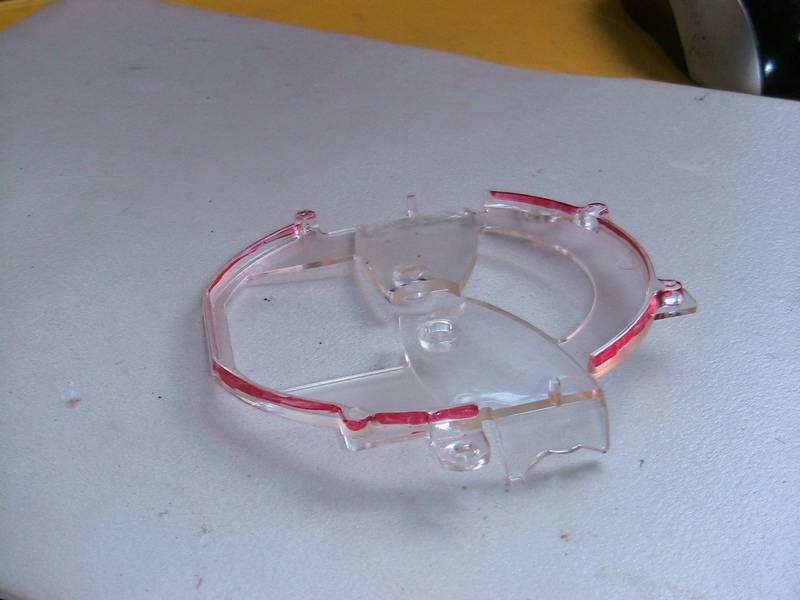 Пункт первый, японцы бля :angry создали световоды просто кошмар но как ни странно это нам поможет. На фотке отмечен борт световода подлежащий удалению, нам нужно как то уменьшить высоту чтоб и крышка закрылась и стрелки легко оделись. Минимум нужно уничтожить 2 мм высоты а лудше почти 3. Вложение: