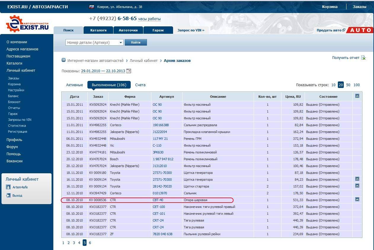 залез на экзист в архивы свои  , самые первые заказы что я на экзисте делал на каринку , тогда закупил тяги, наконечники шаровые и еще много по ходовке всякой хрени , сменил и уже прошло около 3.5 года с того момента , пройдено около 160 000 км по дорогам убогим и нормальным , с месяц назад заезжал в сервис по акции там в честь открытия делали бесплатную диагностику ходовой , так чисто ради интереса заехал , все шаровые , наконечники и рулевые тяги в нормальном состоянии сказали .