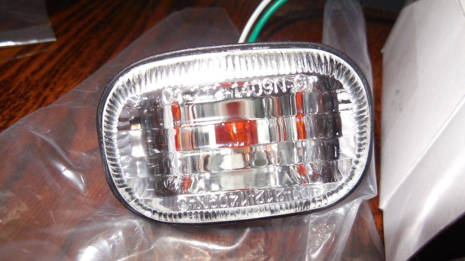 Эпопея с повторителями поворотов успешно завершена. За 270 рублей заказал снова "повторитеЛЬ Depo". Пришел комплект- два хрустальных повторителя с лампочками. Надпись на повторителе- 01-212-1409N-C.