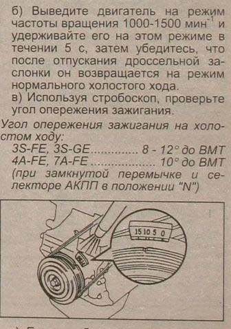 ZOORG писал(а): Atoll74 писал(а): Легион поишет Там дальше еще написано когда достаешь перемычку - угол зажигания на холостом ходу 10-20 градусов. Так что среднячек сделал. А вот это не правильно. УОЗ выставляется только с перемычкой. А 10-20 градусов, это указаны углы в пределах которых может находиться метка на ХХ после как уберешь перемычку. Так что делай УОЗ по букварю - с перемычкой 8-12 градусов, а лучше выставь золотую середину 10 градусов. А потом уж дальше копай....