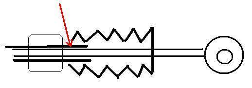 Это приблизительная схема тросика в этой части. Которая часть сломана? Та, которая указана стрелочкой?