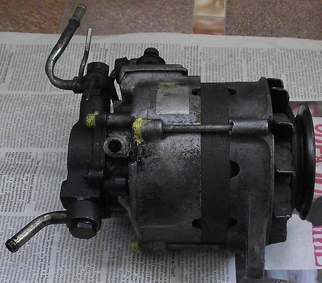 С вакуумником на жопе, на короллы в 100-м кузове такие ставились. Полмашины разобрали чтобы щетки поменять. Зарядка пошла. А лампы на приборке так и горят. Диодный мост так достать и не смогли, там весь генератор нужно разобрать чтобы его вынуть. Ну зато теперь я понял как регулятор и щетки достать не снимая генератор Добавлено спустя 14 минут 12 секунд:Тут еще вопросик нарисовался: кислородный шланг - он маслостойкий? Фишка в том, что шланг подачи масла к вакуумнику растрескался от времени, а мы его гнули туда-сюда, кирдык ему пришел. В гараже не нашел маслостойкий шланг подходящего диаметра, а кислородный (старый советский) подошел как родной. Вот теперь думаю, в нём резина стойкая к окислению,а вот масло её не разъест?