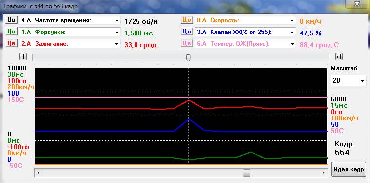 Atoll74 писал(а): Ответь плиз, на такой вопрос - Что менялось на движке при свапе??? Вечер добрый! Спасибо что не оставил мою проблему в стороне! Действительно насторожил озу, но я съездил к инжекторщику, тот осциллографом перепроверил - говорит всё в норме! он сказал что на холостом 700 оборотов, зажигание должно быть 10 градусов, у тебя, говорит так и есть! А вот програмка показывает 13-15 градусов! что это? погрешность проги, или "гореинжекторщик"? По поводу скачков после поездки, это я кандёр включал(прошу прощения забыл предупредить  )! Хотя перед вкл кондера я заметил скачки на холостом ходу, на вырезке видно! Добавлено спустя 4 минуты 33 секунды:Atoll74По поводу свапа - я менял двиг стд, мозг стд, трамблёр стд, свечи, лямбда!