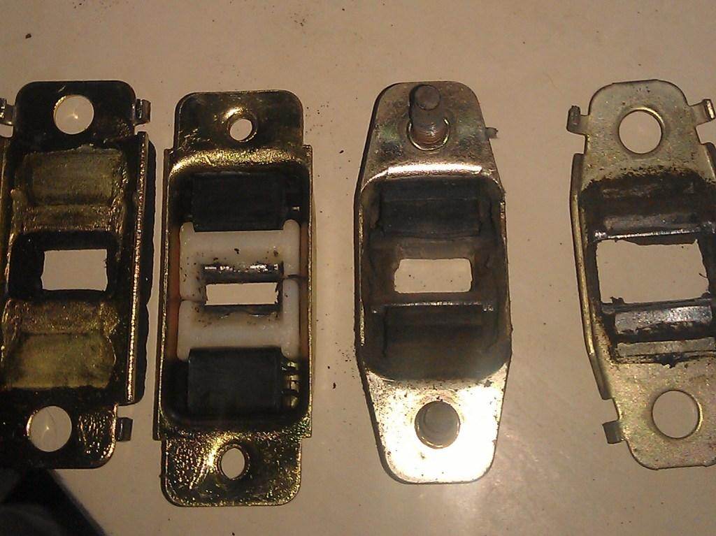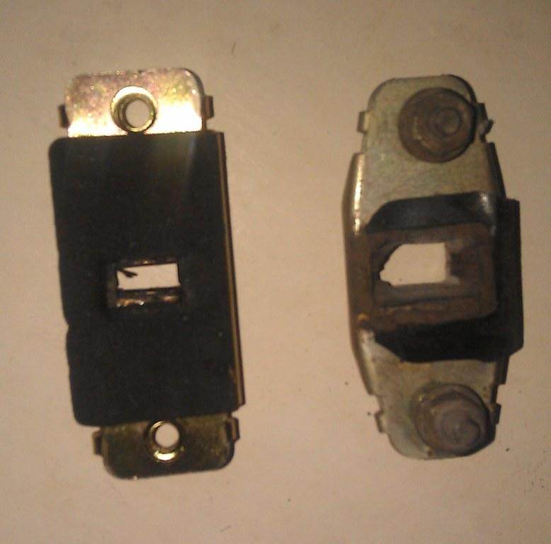 Вот сам ограничитель. От него потребуется сам ограничитель и фиксатор. Скобу можно выкинуть  Разбираем и родной и новый. Собственно, вынуть папу из мамы А дальше, старого хрыча пихаем в молодуху  Получается такой тандем На родном ограничителе стоят шпильки для крепления к двери, на новом отверстия под болты. Но расстояние между этими отверстиями меньше, чем на нужно. Поэтому придется чутка рассверлить эти отверстия, а потом проточить надфилем. И крепится все это дело уже будет на болтик с гаечкой и гровером еще.   Все готово