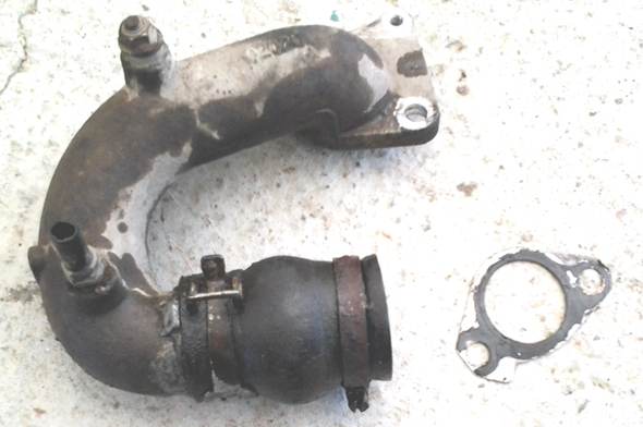 Кому интересно, патрубок поменян. Спасибо MerTV. Самое сложное было снять старый патрубок. Чтоб было проще подлезть к патрубку пришлось снять ремень, отодвинуть помпу в сторону до упора, только после этого удалось подлезть поближе к патрубку пассатижами, разжать хомут и раза с 5 поддеть и сдвинуть его отверткой. После срезать этот резиновый патрубок. Открутился патрубок от головки блока легко. Новый поставил очень быстро, хомуты поставил новые пружинные, прокладка была посажена на свежий герметик. Для тех кто будет менять, после установки нового патрубка, залейте охлаждающую жидкость через горловину радиатора, просто в расширительный бачок не достаточно. Чтоб уменьшить течь с дырявого патрубка - я на место течи (примерно посередине патрубка снизу) поставил хомут, и более-менее отъездил неделю пока не пришел новый.