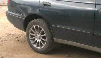 Faranos, Mr_Nuke, номера нет возможности уже найти. Ребят, я ж с потолка не буду брать инфу, т.к. сам езжу на британке. Все мы знаем, что на британке расположение чашек стоек должно быть ниже, чем на японках. Так вот, когда я менял пружины, то купил каябу усиленную RI5464. Поставил и был в ужасе от того, что я БПАН! Перерыл тему нашего форума про эти пружинки, нашел кучу фото Карин Е с ДО и ПОСЛЕ установки. Заметил закономерность, что у всех машин с вином JT или до 95 г.в. был нормальный не БПАНовский клиренс. У меня же с этими пружинами без пассажиров клиренс намного ниже был (после 2-3 дней езды): 2 пальца между аркой и резиной. Отсуда я сделал вывод, что у меня нижнее расположение пружины. Мало того у меня с колесами 195/60 R15 расстояние между чашкой и резиной очень маленькое - еще один довод. Для наглядности фото примерки колес 185/55 R16 - диаметр колеса 610 мм. Замечу, диаметр колеса 195/60 R15 на 5 мм больше. Ниже фото карины (JT) с темы про задние пружинки для примера - вот этого я и хотел добиться, у меня ничего не получилось.