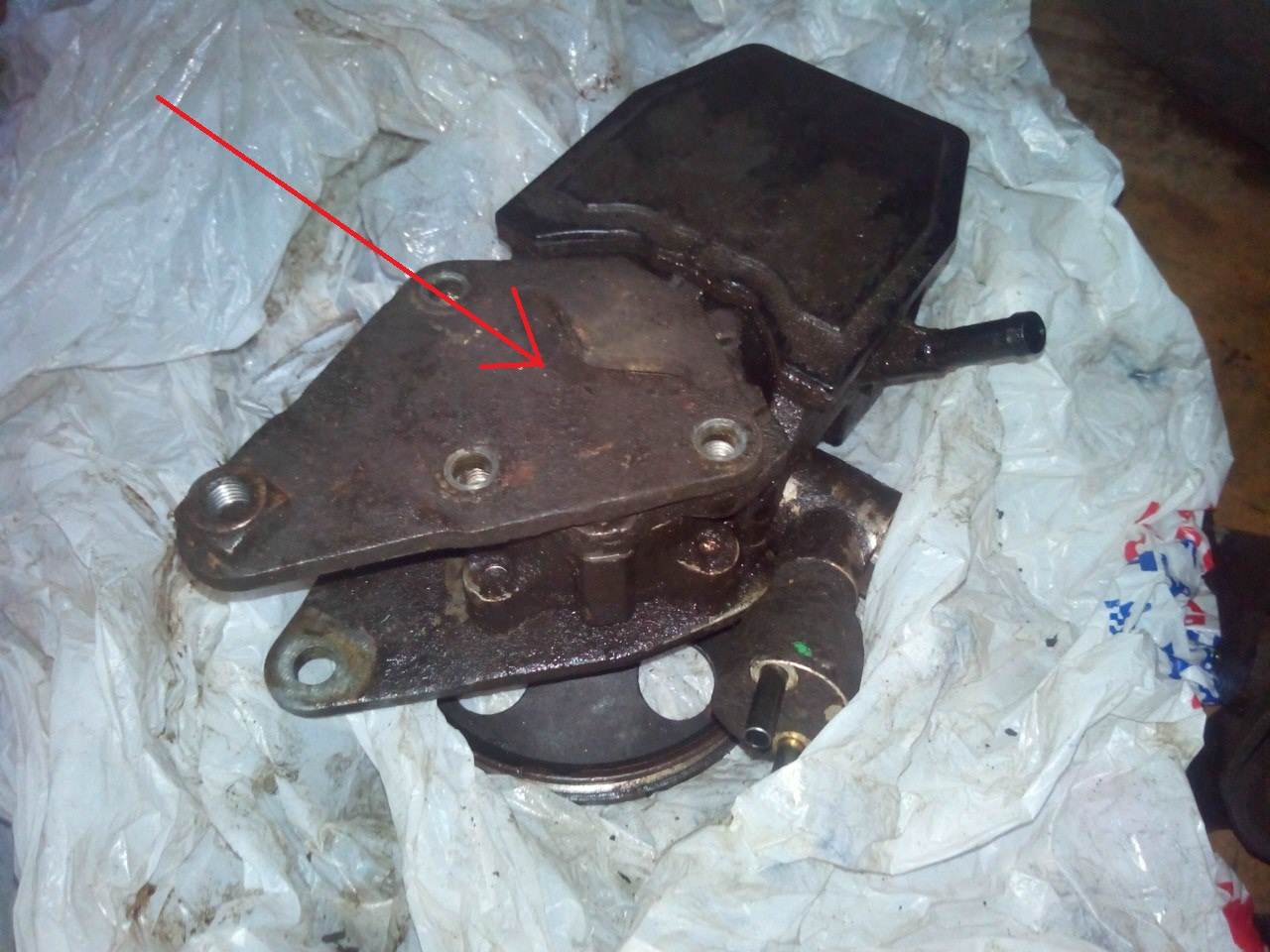 А вот теперь обсудим мой случай: мой насос с квадратным бачком приказал долго жить (зашумел подшипник), поиски такого-же подшипника успехом не увенчались, их просто нет в продаже, стандарт дурацкий. Однажды у друга в сервисе, знакомый мне говорит - у меня есть насос, только он с круглым бачком, снимай, ставь. Ну хорошо, полез в закрома, да, стоит на движке насос с круглым бачком, снял. Снял свой насос и поставил круглый, все подошло, встал, как родной, единственное только не смог установить клапан перепуска воздуха (с англичанки на японца он не подходит). Завел, все хорошо, но вот только через 2 дня загудел, да загудел так, буд-то сотня шершней под капотом и зуд на руле. Ну что делать, ладно. Задался вопросом, откликнулся наш коллега Валерий, Well который, мол есть насос круглый, приезжай, попробуешь. Забрал, сегодня приехал в гараж к другу, снял предыдущий круглый насос, начал втыкать новый и.... а фигушки, крепёж не подходит! В общем позвонил ему, потом Сергею Mer TV, сказали, что он должен меняться вместе с кронштейном, ага, где мне его взять-то щас?! Короче голь на выдумку хитра, давай сидеть над ними троими и думать, чё делать, машину выгонять надо да и завтра на работу. Вот в общем что в итоге придумал и получил: