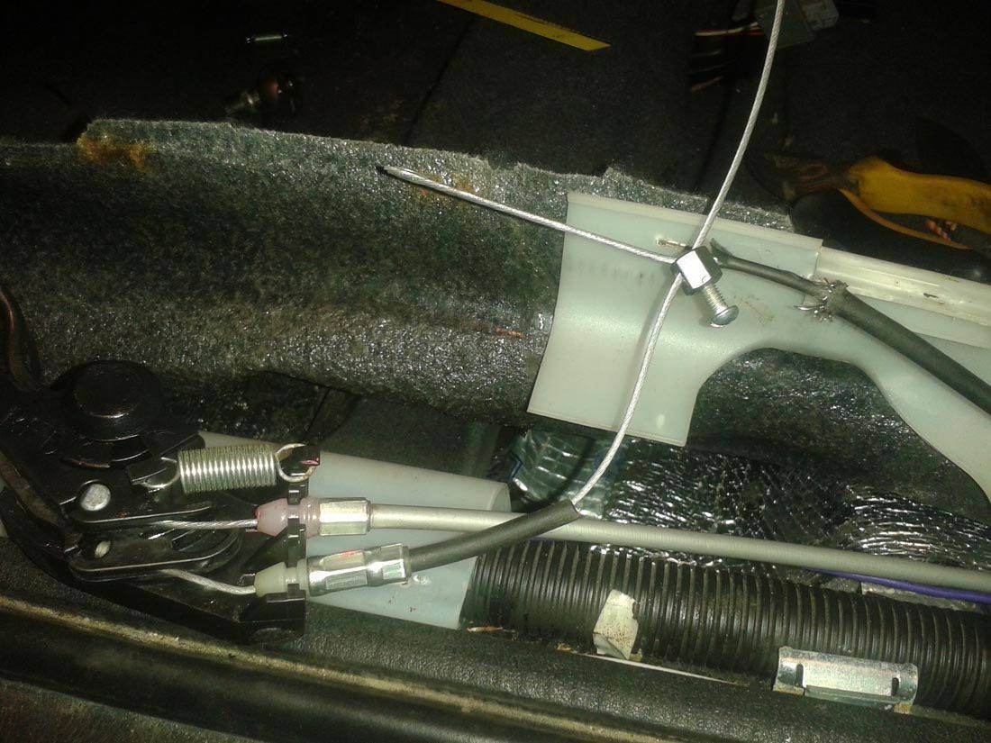 был рваный трос под сиденьем, 2 см от бобышки, починил так, нарастил другим тросиком и замял две медные гайки (одну в тесках, другую кувалдой), пока работает, не выдержит - поставлю актуатор