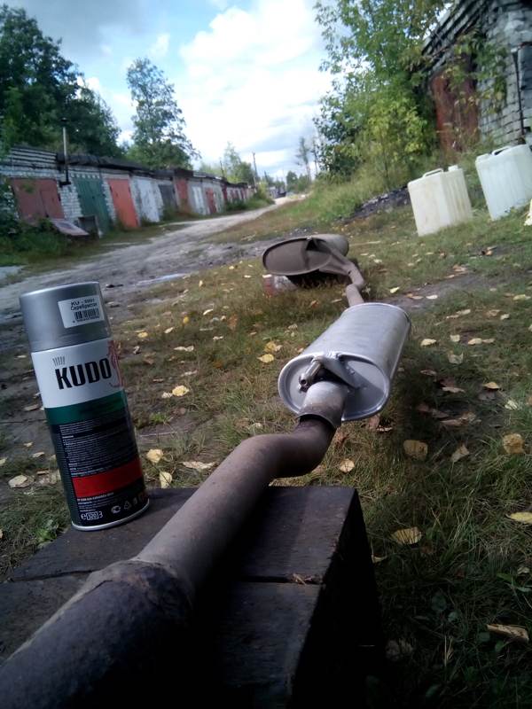 Пояснения думаю не нужны, все видно на фото. Диаметр основной трубы 42мм, краска термостойкая куплена в магазине. Гофру забыл сфоткать, она у меня в норме, поэтому не стал заморачиваться.