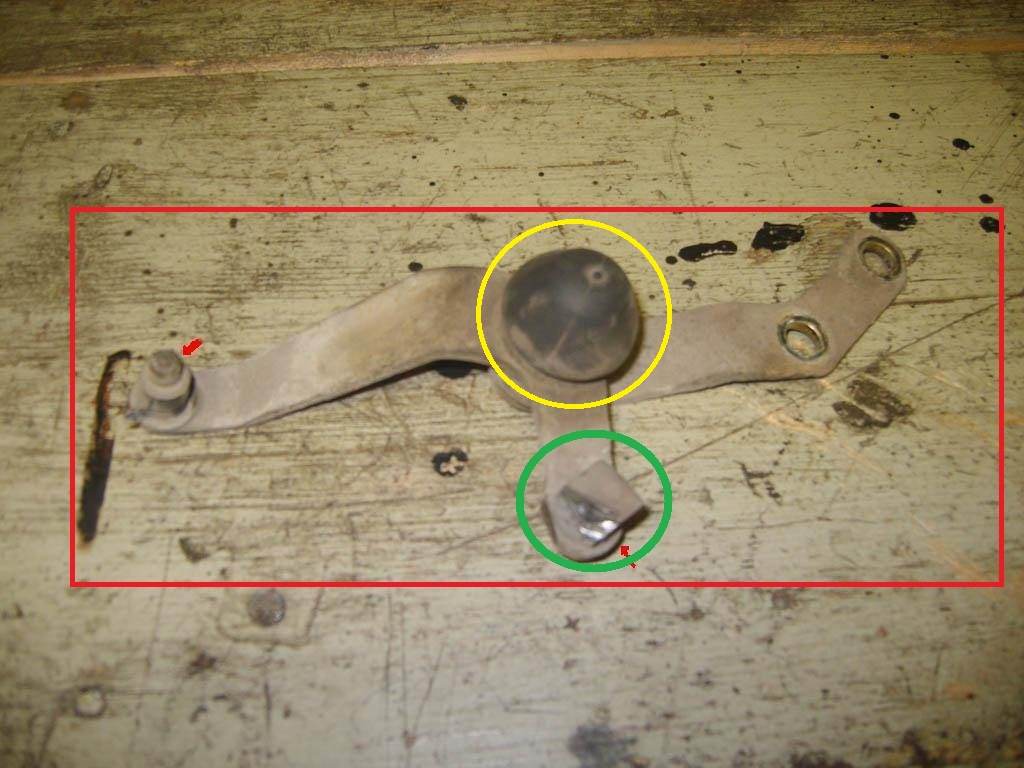 Вот как я лечил люфт и плохое включение второй (иногда с хрустом) Заменил втулки рычага выбора передач, сухарик, который был истерт. Бушинги тросов поменял на подшипники. Залил ATF в коробку. Теперь все скорости включаются четко без хрустов, остался не большой люфт в кулисе, но это не напрягает. На картинке отметил красным.
