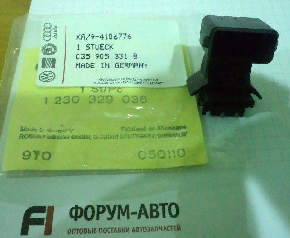 pony писал(а): нашел от 100-ки ауди, заказал, придет, выложу фото )) если то что нужно цена вопроса 100 рублей 10 дней с Германии Пришел разъем, подходит как родной, номер по VAG 035 905 331 B, внутри лежала бошевская бумажечка с номером 1 230 329 036, ценник по оригиналу VAG в 4 раза дешевле бошевского ))) фото ниже