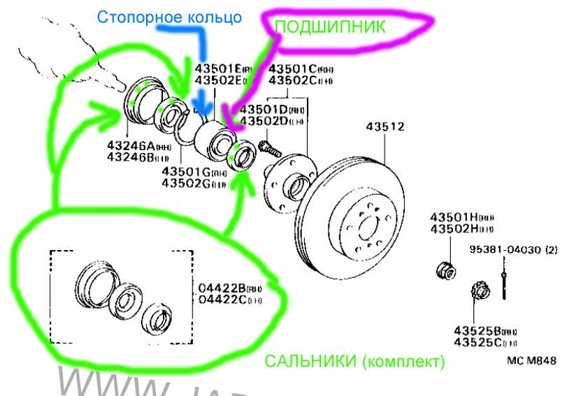 ETYRINОсобо сложного ни чего нет, НО! без приспособ/оправок под подшипник, будет сложно его туда невредимым загнать  , нужна такая оправка, чтоб давила в наружнюю обойму, но была чуть меньше диаметра наружной обоймы, чтоб не застряла в кулаке  , и при этом еще не касалась внутренней обоймы подшипника, мне когда меняли, по месту перетачивали, из сделанной ранее под какой то другой авто. Кстати обрати внимание на шаровую, моя болталась как карандаш в стакане  , хотя сколько раз лазил в подвеску, всегда думал что как новая  , видимо ее клинило в крайнем положении, и я ее принимал за "тугую"