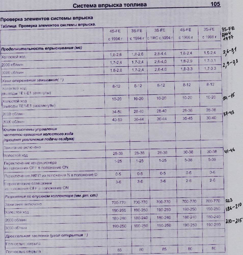 Fidel У меня 3S-FE, 2.0, 3D, АКП, A540H, 1997 г. Выбег не знаю, я вот с этой таблицей сравниваю, но с каким столбцом не знаю. Некоторые параметры не могу даже определить. Помогите, пожалуйста.