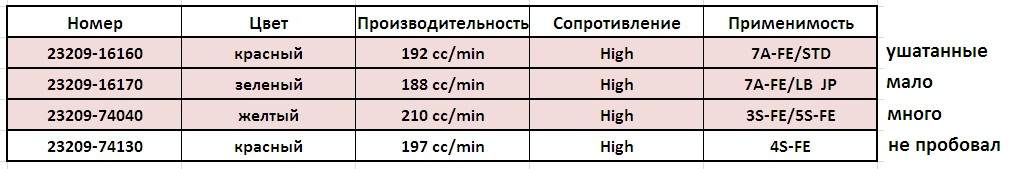 FidelЕму еще проще, на диагностику CO заехать, и отрегулировать как положено  , мне вот думать приходится, рабочая лямбда или нет, регулирует ли roman.cherchenkoСейчас от 3S стоят, но желательно ( в твоем случае очень, раз лямбды нет) поставить от 7A или 4S (оба 1.8L), чтоб соответствовали объему двигателя, там и так не идеально будет с чужими мозгами, а если еще и форсы будут не те, то совсем печально будет  , у меня сейчас на холодную, до 40 град. захлебывается, купил форсы от 4S, но еще не ставил, некогда все чёта  , а когда только собрал, стояли форсы от японского 7А ЛБ, их на максимальных оборотах не хватало, заметно было, ставил и от 7А СТД, но они видимо ушатанные в хлам были, жрала больше чем с 3S-овскими, вот табличка с номерами тех что я ставил (выделено), и те что еще не успел (не выделено): Вложение: