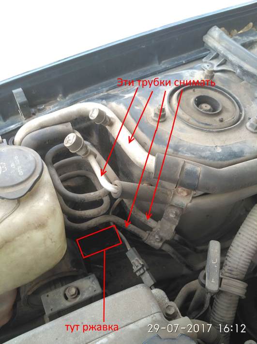 Случилась небольшая трабла - разошелся шов с внутренней стороны правого переднего крыла (правое переднее крыло было с вмятиной, по весне выправляли), т.к. подкрылок еще нет, туда попала вода и верхняя часть крыла прогнила. Причем весьма качественно - особо не тыкал, но похоже насквозь. Вердикт двух кузовщиков - разбирать, варить вставку, обрабатывать, плюс я еще подкрылки поставлю. Главная проблема - нужно снимать трубки кондиционера, которые идут прямо над этим местом. Трубки отметил, место (примерно) тоже. Понятно что попадаю на разгерметизацию системы и перезаправку кондея в будущем. Вопрос - если будут снимать мне эти трубки, нужно ли сразу же заменить какие-то уплотнительные кольца/прокладки? Честно говоря по схеме экзиста так и не понял, каким образом герметизируются соединения. P.s: фото на форум не влезло, заливаю на ядиск. https://yadi.sk/i/dTmx7jM-3LYan7