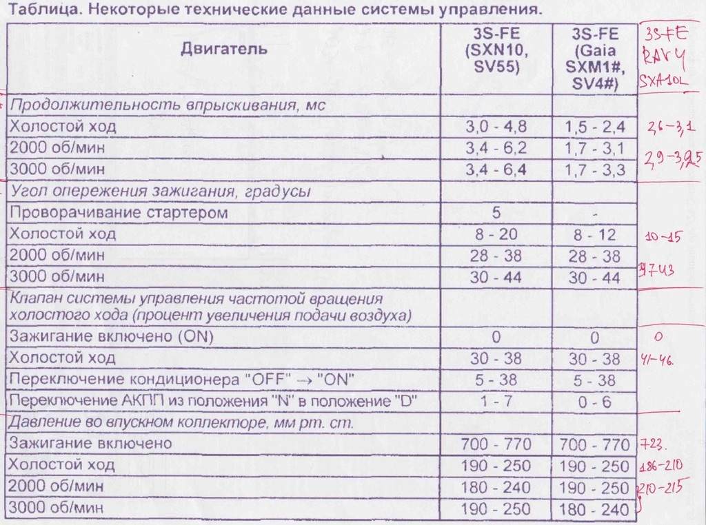 Fidel У меня 3S-FE, 2.0, 3D, АКП, A540H, 1997 г. Выбег не знаю, я вот с этой таблицей сравниваю, но с каким столбцом не знаю. Некоторые параметры не могу даже определить. Помогите, пожалуйста.
