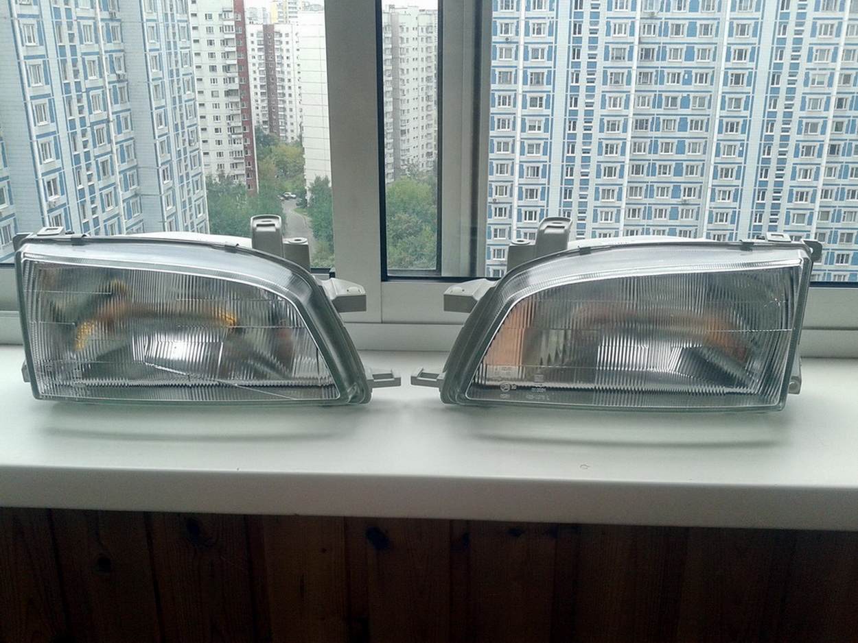 В связи с тем, что одна фара начала светить в небо и не регулировалась а далее попал под камнеобстрел в результате чего получил трещины сразу в обоих фарах, собрался духом и финансами и купил новую оптику. Никакими линзами и хрусталями заморачиваться не стал и купил то что ставили на заводе. Меньше вопросов на техосмотре будет… Теперь снять со старых корректоры, приспособить на новые и отрегулировать на стенде… вот теперь думаю какие лампы туда поставить… на старые фары ставил и +30 и +40% — горят через пару месяцев…