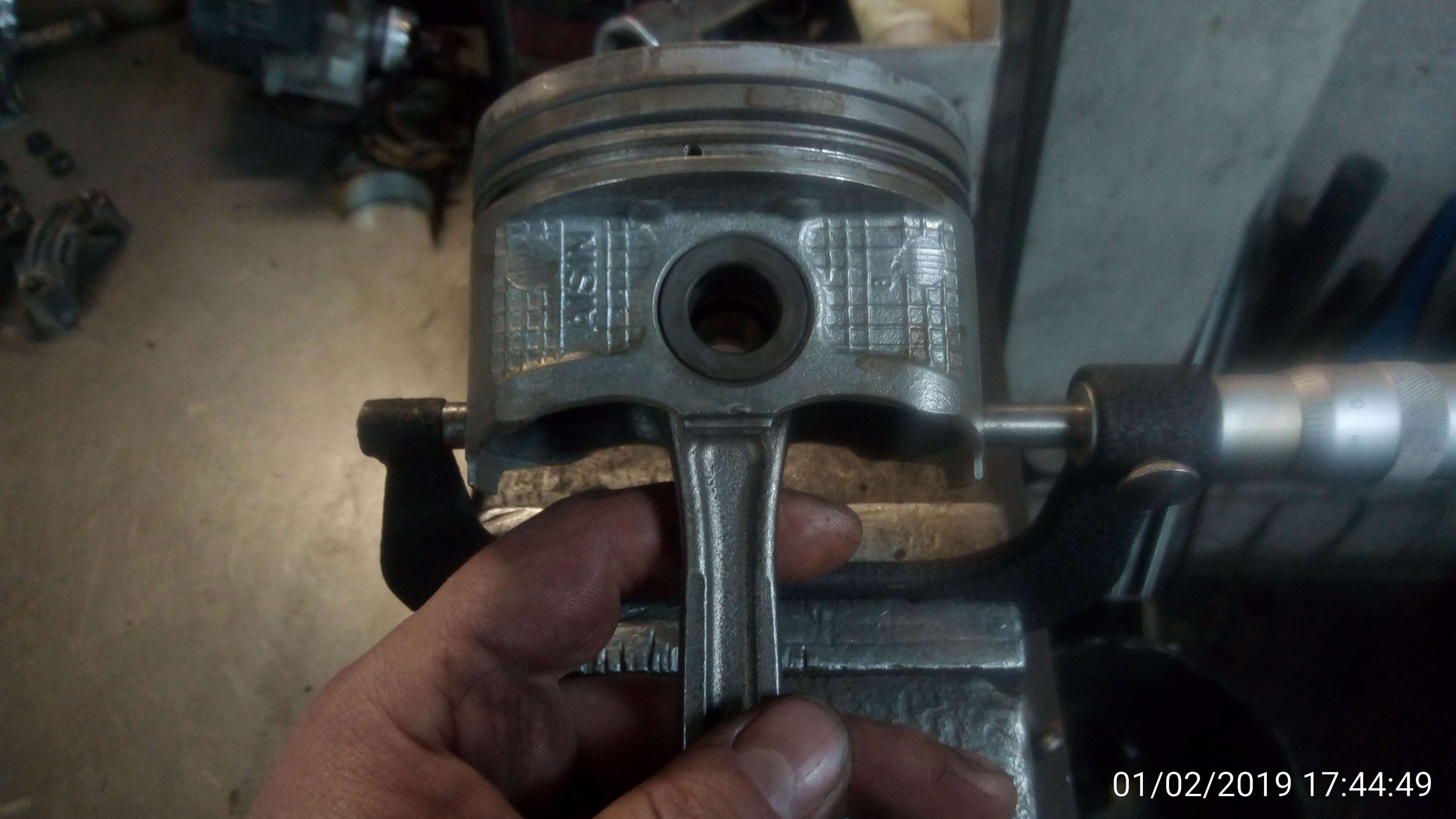 Поршня познего образца,с прессовой посадкой на шатун. На КаринахЕ такие редкость,только на поздних годах англичанок. Но об этом познее. Измеряем поршень микрометром Вложение: