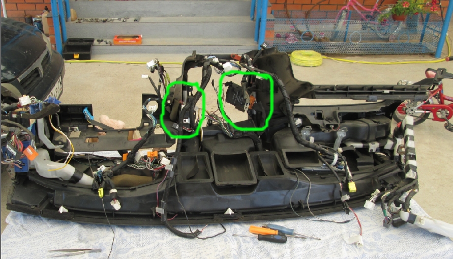 10bez0 писал(а): осталось определить его название и внешний вид По моему называется это блок управления реле дверей, типа этого. Там была надпись со словами relay door. Находится в районе крепления магнитолы или слева или справа (точно не помню, было давно). К парпризу прикреплён при помощи скобы и самореза. На фото снятый парприз, указал где примерно находится. На втором рисунке будет более понятно.