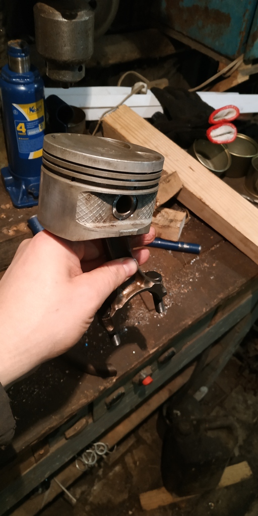 Всё встало на свои места чётко и без капризов. Вот правда пальцы старые выпрессовывал 2-х тонным домкратом, думал он треснет) уж ооочень они плотно в шатунах сидели, зато новые нормально вошли с небольшим усилием.