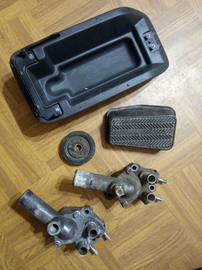 еще кучка не нужного 2 корпуса термостата подножка ролик натяжной ремня кондиционера (металлический) верхняя часть подлокотника отправлю