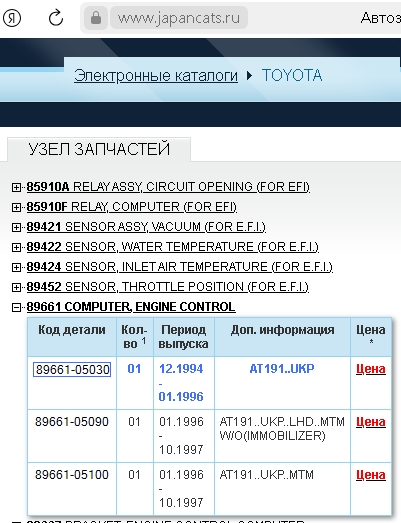 Каталог говорит что ЭБУ на мотор 7А, а насколько я знаю 7А на наши машины бывают только LB. И ставился на машины 12.1994 - 01.1996https://exist.ru/Parts/Default.aspx?pid ... 392&sr=119https://www.japancats.ru/TOYOTA/scheme. ... &office=ru